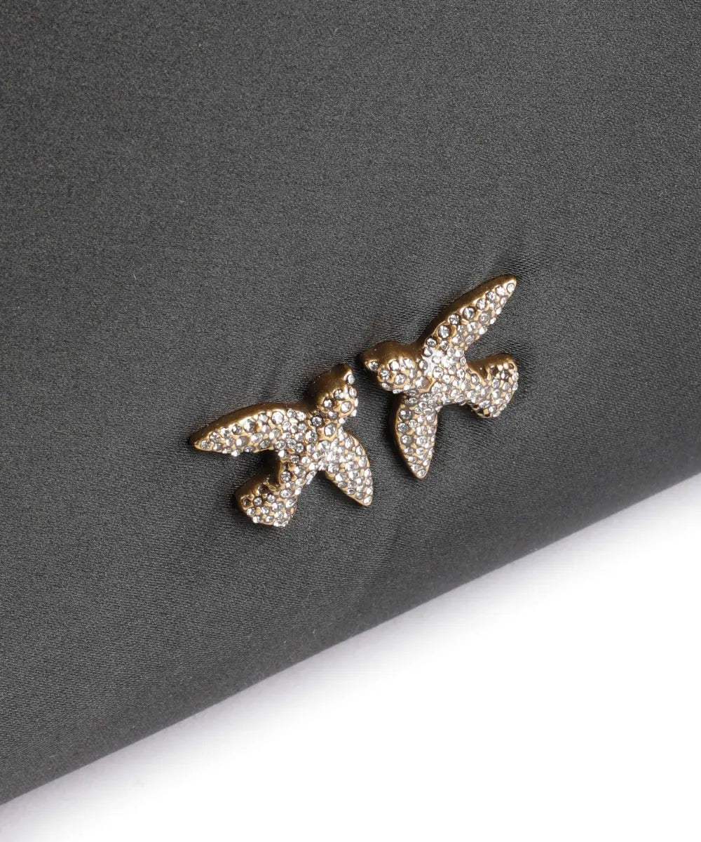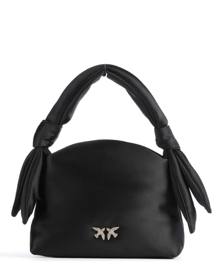 ارتقِ بأسلوبك مع حقيبة يد بينكو لوف بيردز الساتان الرائعة ذات المقبض المعقود. صُممت هذه القطعة الأنيقة بعناية فائقة من الساتان الأسود الفاخر والناعم، لتضفي جاذبية أنيقة وراقية. تتميز بمقابض علوية مميزة مزينة بتفاصيل عقدة وشرابة أنيقة، مما يضيف لمسة معمارية فريدة لتصميمها. يزين الجزء الأمامي من الحقيبة بفخر شعار طيور الحب الأيقوني من بينكو، المرصع بشكل مبهر بكريستالات متلألئة تلتقط الضوء مع كل حركة. بفضل تصميمها المتوازن تمامًا بين الهيكل المنظم والنعومة، تعد هذه الحقيبة المتعددة الاستخدامات الإكسسوار الأمثل لإكمال إطلالات السهرة الراقية أو لإضافة لمسة من الفخامة إلى إطلالاتك النهارية المميزة.