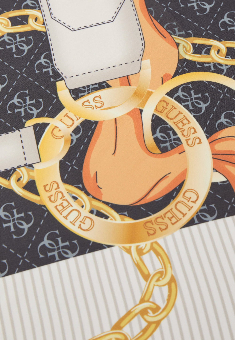 ارتقِ بأسلوبك مع فولار جيس الرائع، وشاح مربع فاخر مصمم لإضافة لمسة من الرقي إلى أي زي. يتميز هذا الإكسسوار المذهل بطبعة معقدة مستوحاة من الفروسية، تعرض شعار جيس '4G' الأيقوني المتكرر بمهارة على خلفية داكنة وغنية. تتداخل الأشرطة المتقاطعة الأنيقة بألوان الأحمر والأبيض والرمادي الزاهية بشكل جميل، بينما تتشابك السلاسل الذهبية اللامعة بدقة في جميع أنحاء النمط. تكمل هذا التصميم الفاخر حلقات ذهبية اللون، محفورة بدقة بعلامة 'GUESS' التجارية المميزة. بلمسة نهائية من حافة متناقضة أنيقة، يعد هذا الفولار متعدد الاستخدامات القطعة المثالية لإضفاء لمسة مميزة على خزانة ملابسك دون عناء، مما يوفر إمكانيات لا حصر لها للتصميم.